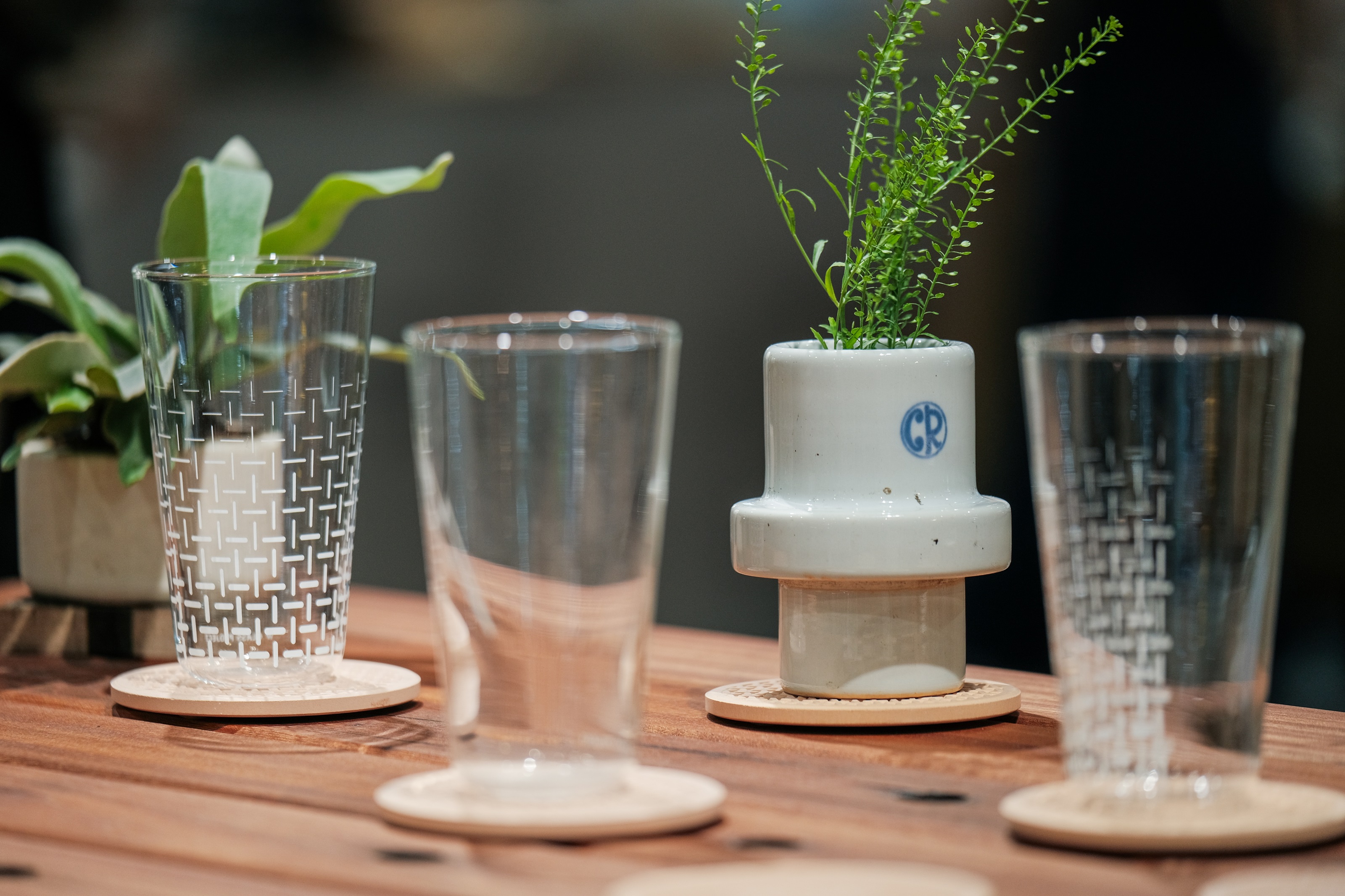除了變電箱隔熱墊、台電人孔蓋杯墊等人氣小物外,本次展覽同步展出去年廣獲好評的最新力作「退役封水銅條再製計畫」,以位於日月潭的明潭、大觀水力電廠抽蓄機組獨有的「封水銅條」退役回收材料,製成日月潭水力筆、筆座和桌上小物轉子造型陀螺,以創意與精良技術將退役封水銅條轉化為生活中的文創用品。